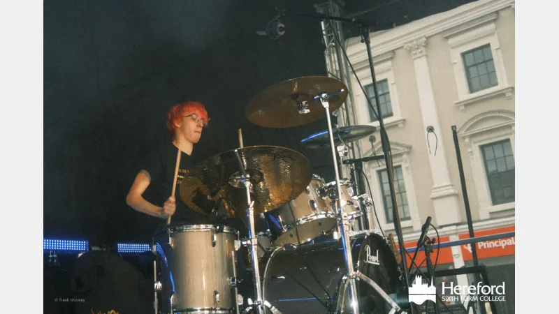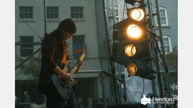 With photos taken by Frank M Studios and music organised by Encore Enterprises, Hereford high town was buzzing with energy as Dead on Arrival performed a stunning 35-minute set, closing the young person’s music segment of the evening. Hereford Sixth Form College extends our thanks and appreciation to all involved in creating such a wonderful event!